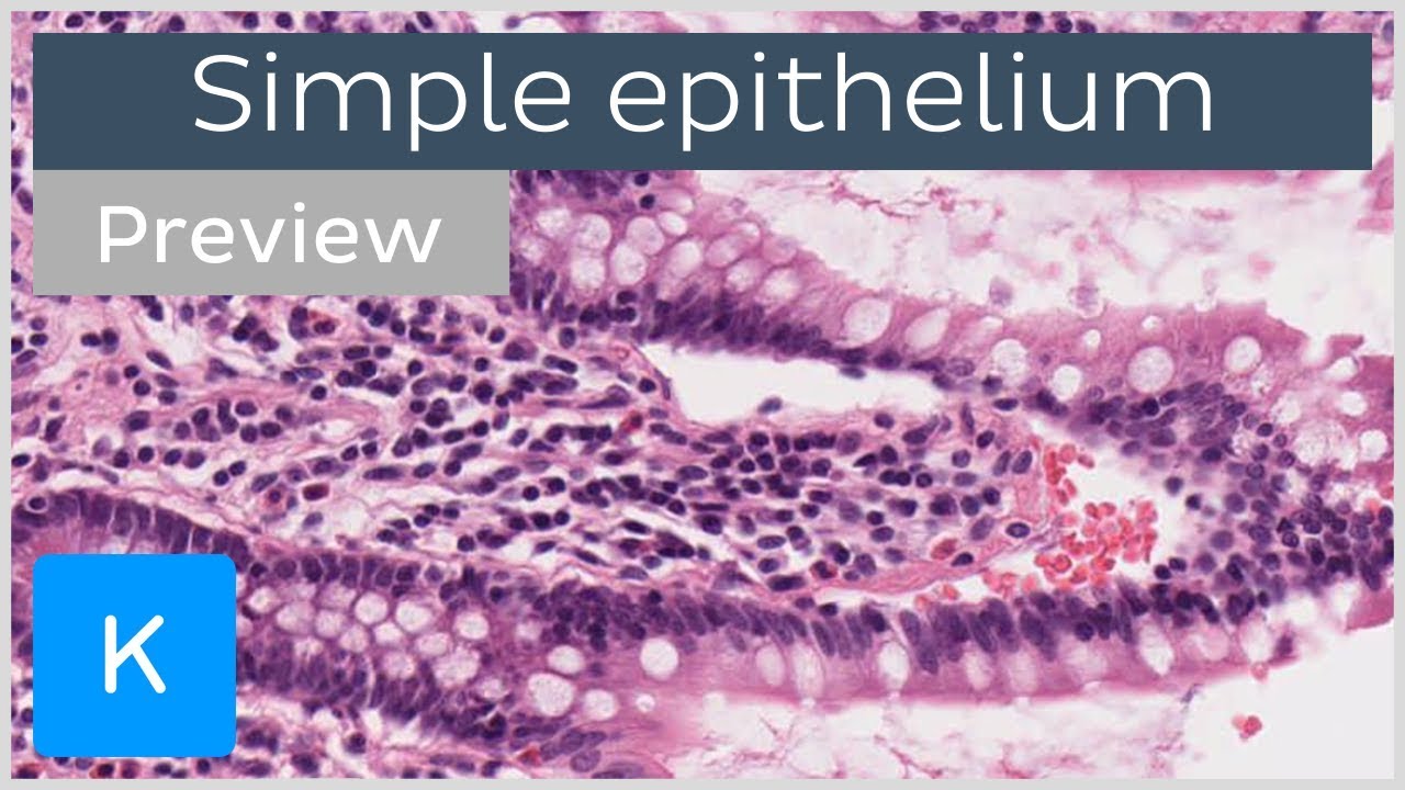 Epithelium is classified by: (1) number of cell layers โ simple (one layer) or stratified (multiple layers); and (2) shape of surface cells โ squamous (flat), cuboidal, columnar, or transitional. Simple epithelium consists of a single layer of cells all directly attached to the basement membrane.