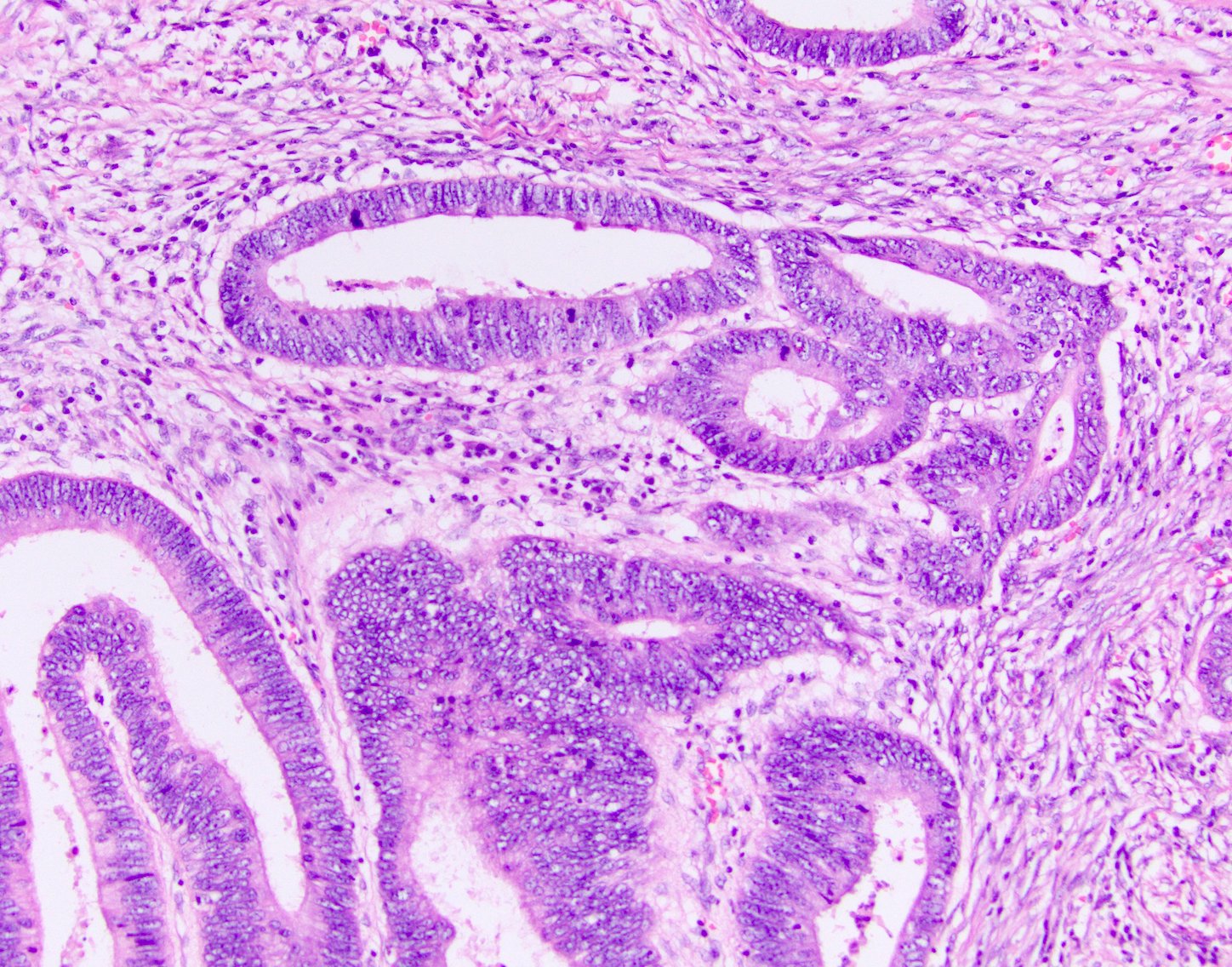 - Desmoplastic stromal reaction around tumour glands