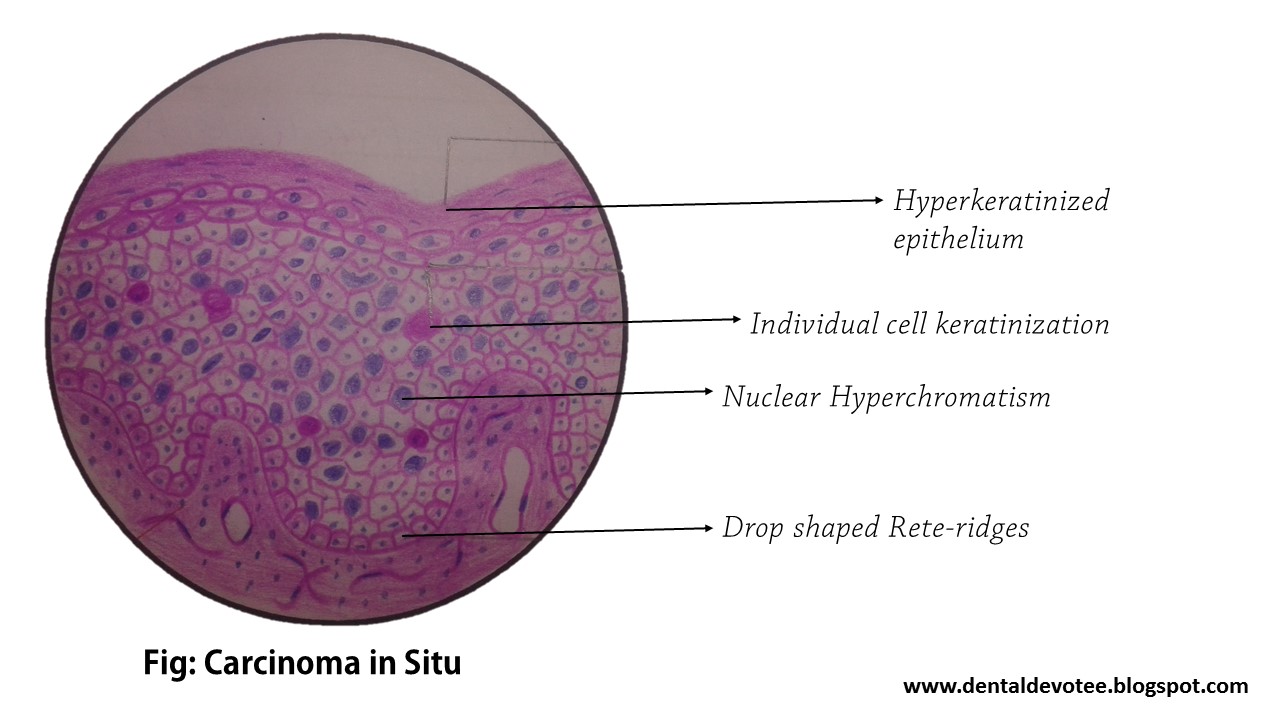 Carcinoma in situ (CIS) is full-thickness neoplastic transformation of the squamous epithelium without stromal invasion โ equivalent to CIN 3 / high-grade squamous intraepithelial lesion (HSIL). The SMILE (Stratified Mucin-secreting Intraepithelial Lesion) variant involves endocervical crypts with polyhedral undifferentiated cells and mucinous cytoplasm.